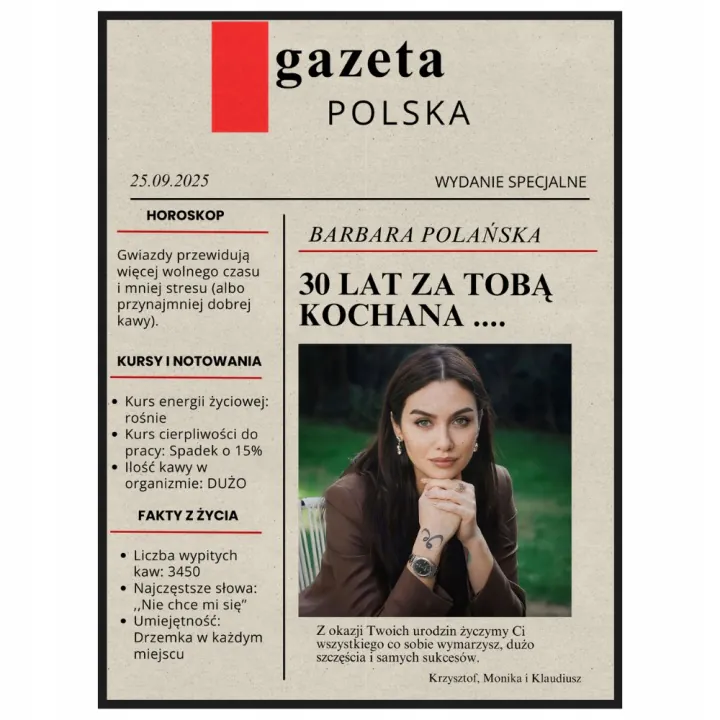 Dodaj wlasne cytaty, daty i wspomnienia. Motyw zostawia duzo oddechu i eksponuje produkt zamiast interfejsu.